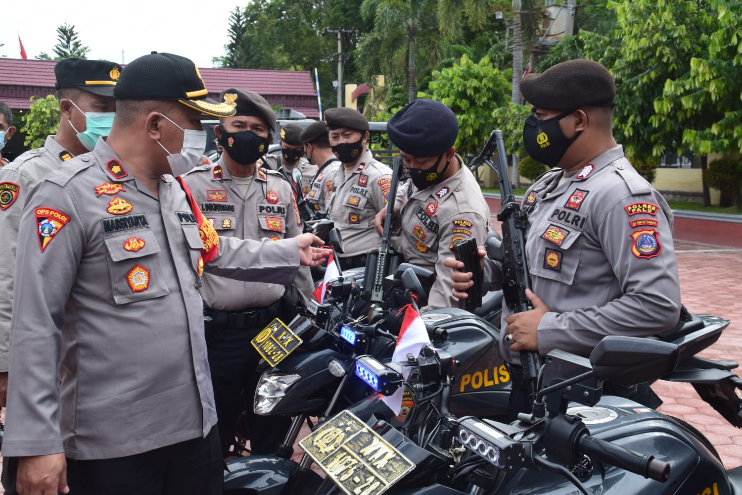 Agenda tersebut diawali dengan pengecekan senpi satu persatu , melanjutkan pengecekan kesejumlah kendaraan, baik roda dua maupun roda empat , kegiatan tersebut menerapkan prokes secara ketat , Jumat (20/08/2021)